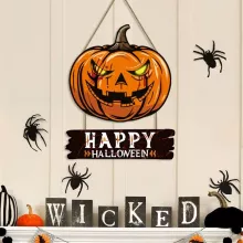 Make your Halloween entrance unforgettable with this Wooden Halloween Pumpkin Door Sign. Designed with a playful cartoon pumpkin look, this hanging decoration adds a touch of fun and festive spirit to your doorway, wall, or party space. Whether you’re welcoming trick-or-treaters or setting the mood for a Halloween party, this cute and funny pumpkin hanger is the perfect seasonal accent.