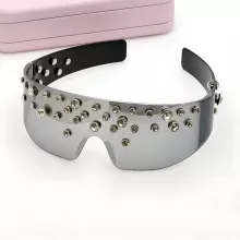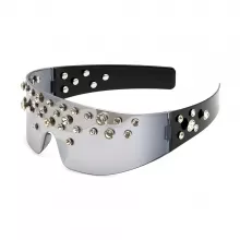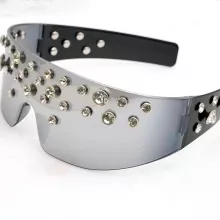 Unlike ordinary sunglasses, these aren’t about blending in—they’re about making a statement. The futuristic oversized shield lens gives off an edgy, sci-fi vibe, while the rhinestones and rivets bring the sparkle and attitude. With these shades, you’re not just wearing eyewear—you’re wearing confidence, creativity, and unapologetic cool.